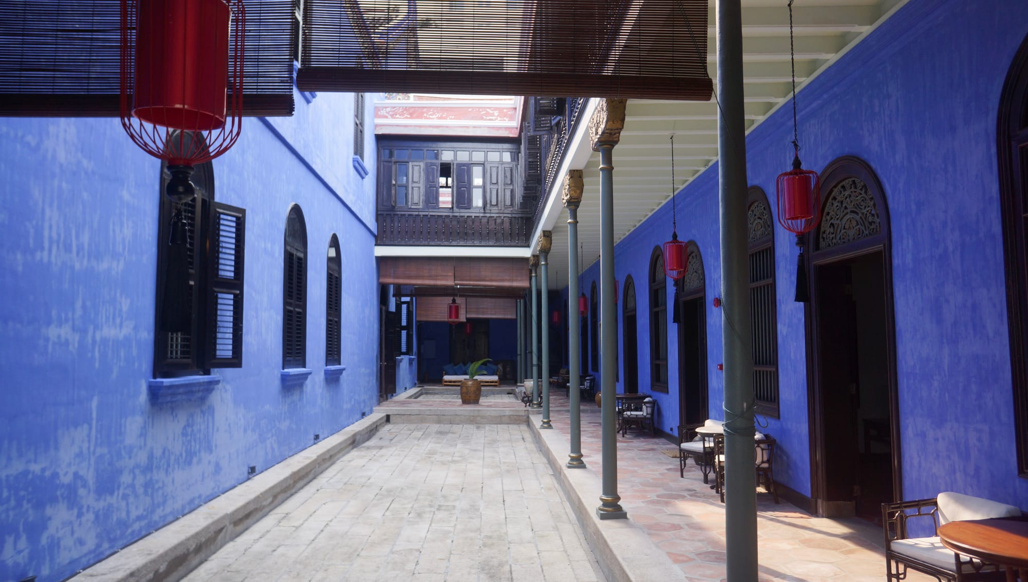 It is hard not to miss the blue walls of the Cheong Fatt Tze Mansion. The deep blue is easy to see from the street and even down it and around the corner. The colour came from the dye used in the cleaner to make the walls white. Over time, the walls began to have a slight blue tone. To make the house stand out more, the whole house is blue.