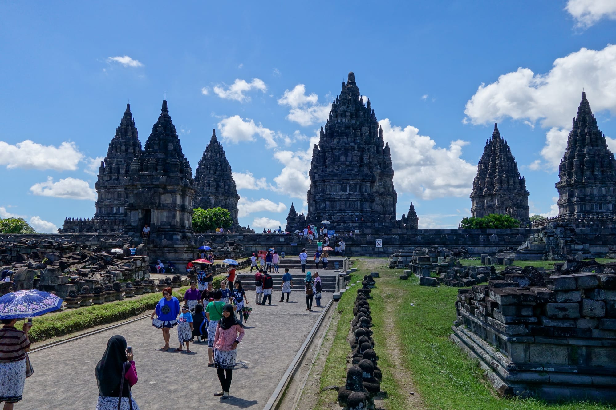 Prambanan was also built in the 9th century and is a Hindu temple after the Buddhists were kicked out. The Hindus were kicked out by the Muslims, which makes the country the second or third largest Muslim country in the world. Today, there is a mix of all three as the country has become more tolerant. The temple is divided into six buildings, each honouring a major god in the Hindu religion. The buildings appear sharper than Borobudur. They were very different from the ones I had seen in India, Sri Lanka, and Singapore, as the buildings were made from lava stone. Two earthquakes in 1906 and 2006 destroyed the temple. I’m not coming back in 2106. The guides told us about the carvings on the outside of the buildings and the stories they told. They also asked others not to take pictures of us, which made the tour more comfortable. Our guides asked us for feedback.