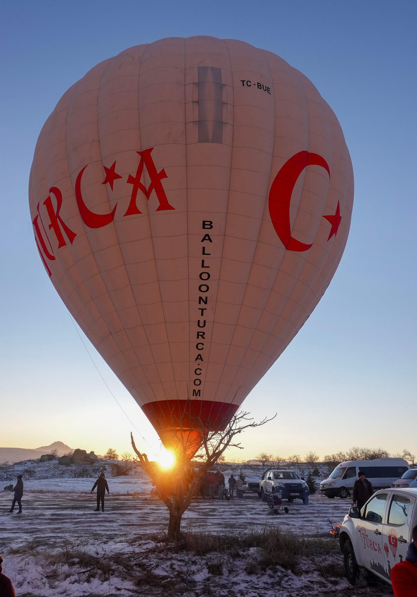 The van drops us off at the top of a hill. The sun is coming up, making things warmer, but it is still cold. We stay inside inside the van as they put up the balloons. It is January, and it is cold. There aren’t as many tourists and people wanting to go. The busiest time is during the summer.
